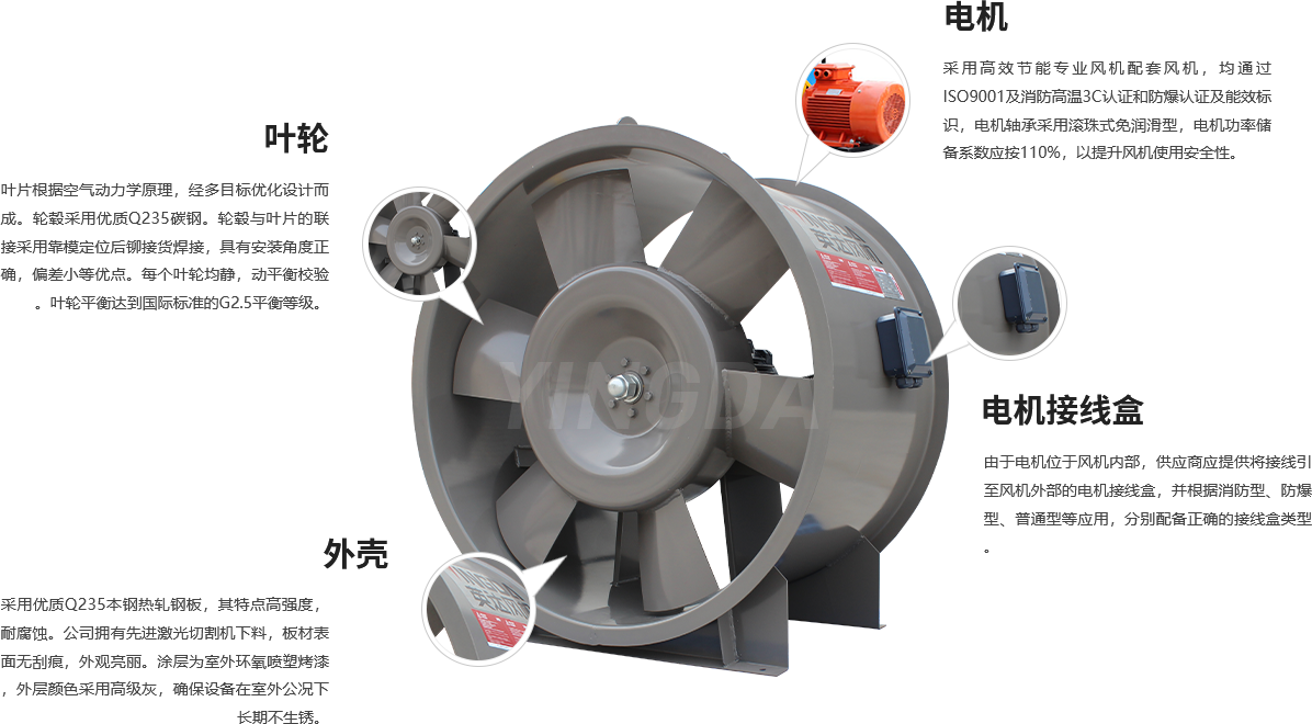用途:普通送排風(fēng)、防爆送排風(fēng)、正壓送風(fēng)、消防排煙等