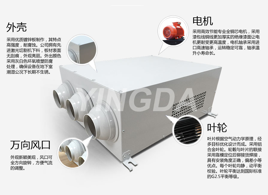 英達(dá)風(fēng)機(jī)采用優(yōu)質(zhì)鍍鋅板制作,其特點高強(qiáng)度,耐腐蝕。公司擁有先進(jìn)激光切割機(jī)下料,板材表面無刮痕,外觀亮麗。外出顏色采用灰白色環(huán)氧噴塑防腐處理,確保設(shè)備在地下室潮濕公況下長期不生銹。